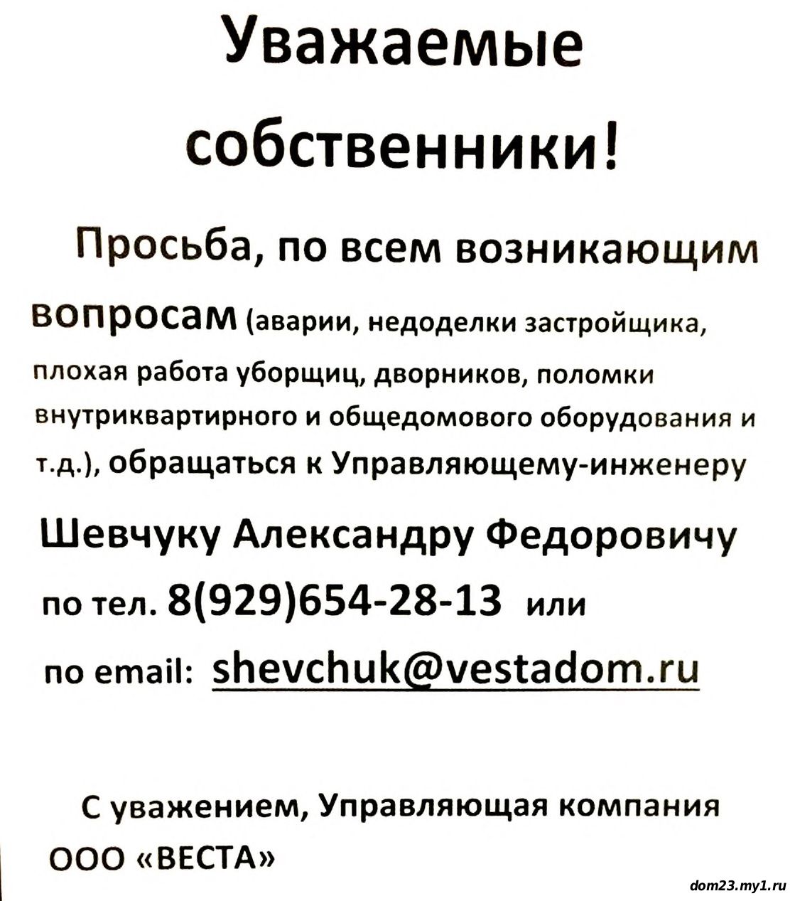 20 мая состоялось собрание собственников д. 23 по ул. Высоковольтная. На собрании были определены основные вопросы к УК. Предлагаю обсудить. Вопросы: 1. За просить у УК должностную инструкцию охраны дома. 2. Доступ к счетчикам на воду и отопление. Кто ответственный за отключение сигнализации? 3. Просим предоставить план установки камер в доме, подробную смету на установку камер. Просим указать сроки выполнения работ по установке и настройке камер. Когда можем провести экскурсию по системе видеонаблюдения дома в целом? 4. Когда будут учтены в счет коммунальных платежей 17 000 руб., внесенны ... Читать дальше » |